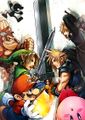 Development[edit]SSB4 was announced in passing at E3 2011; however, the game's development was not slated to begin until sometime after October 2011, after the completion of Sakurai's other project, Kid Icarus: Uprising.[4] He had stated, in response to a fan asking him about whether a "child Link" would appear in the game, that he had not at the time decided on who would appear in the game. However, he had also said that he "can't say that it's entirely out of the realm of possibility that some Capcom character could appear in the next Smash Bros."[5] Indeed, Capcom's Mega Man was ultimately confirmed as playable, and Ryu was made available as DLC. The paired versions of the game were officially revealed at E3 2013 in the form of a trailer on June 11, 2013, with a projected release in 2014. Development of the game began in early 2012[6], but it went unmentioned during E3 2012, something which many fans were disappointed about despite the known extremely early state of the game; the "first step of the process" was taken shortly after in mid-June. Sakurai expressed disappointment that fans would be waiting for longer than expected for the game to be released due to the earliness of the initial announcement.[7] Shortly afterward, it was revealed during a Nintendo Direct that Namco Bandai (as Bandai Namco was previously named) was the primary developer alongside Sora Ltd., and had already completed a working prototype.[3] On July 2nd, 2012, Sakurai posted a whiteboard drawing on Twitter which was drawn by the game's staff. It depicts Donkey Kong, Fox, a Heart Container, Kirby, Link, Luigi, Mario, Marth, Meta Knight, Mr. Game & Watch, a Mr. Saturn, Pikachu, a Pikmin, Pit, Sandbag, Wario, and Zero Suit Samus; some argue that the curved lines in the background form the shape of Master Hand. The sketch also has what appears to be large block letters hidden below the visible area. While the post came with no explicit confirmation of any of these characters or elements as reappearing, it did show that they were in some sense acknowledged by the staff; everything depicted would in fact turn out to appear in the final game. The image itself was later removed from the original Twitter post.[8]