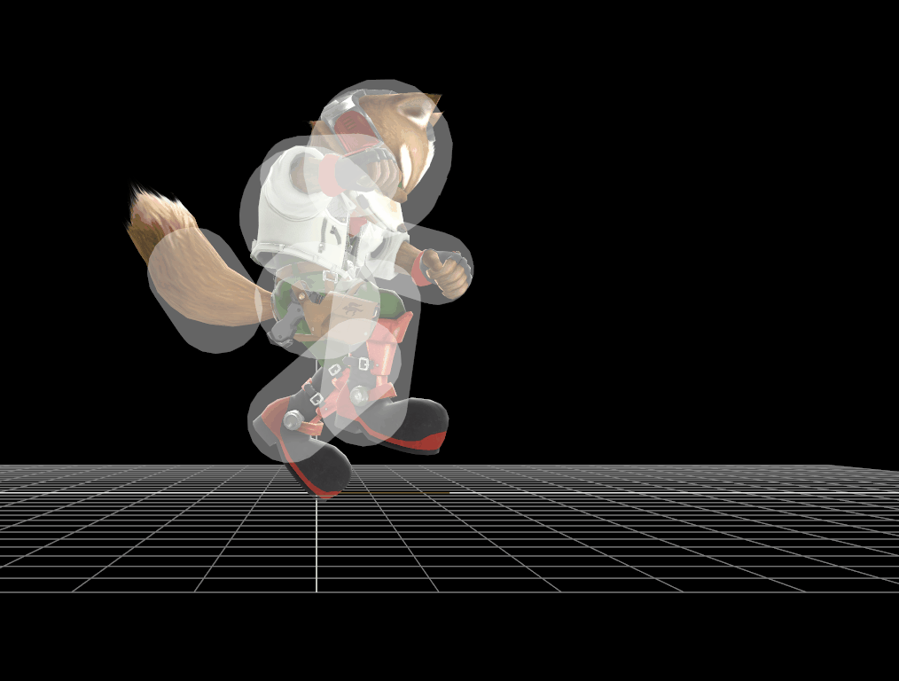 Hitbox visualization showing Fox's second custom up special, Twisting Fox.