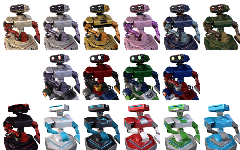 R.O.B. now has alternate costumes based on his appearance in Mario Kart DS, the Virtual Boy, and the Wii.