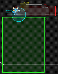 Shovel Knight is active for 1200 frames (20 seconds) and has a base HP of 45. His dig attack deals 15% (shovel head)/13% (shovel handle), places a Pitfall directly beneath him (lasts 4 seconds and there can only be one at a time), spawns an item, and flings three rocks at various angles and speeds: rock 1 is at 47-50° and starts at 2.8-3.1 units per frame (u/f); rock 2 55-58° and 2.7-3 u/f; rock 3 63-66° and 2.6-2.9 u/f. His aerial attack has the same damage as the grounded attack and comes out six frame sooner, but does not have any of the other properties. His Shovel Drop deals 17% (shovel head)/15% (shovel handle) and sends him upwards with 1.2× the speed he had before hitting an opponent. His reflect attack is separate from his regular attacks with its own hitboxes that deal 10% (shovel head)/8% (shovel handle) and will only try to reflect if a projectile is within a 16 unit radius that is 7 units in front of his root bone (the point between his feet). As this region is relatively small compared to his defense-check area, he will generally attempt to avoid projectiles instead of reflecting them unless they appear already close to him.